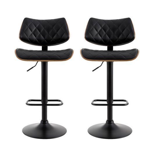 Liberty | Contemporary Black PU Leather Adjustable Bar Stools | Set Of 2