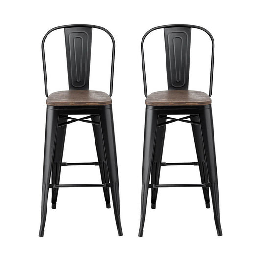 Madden | Industrial Black Wooden Metal Bar Stools | Set Of 2
