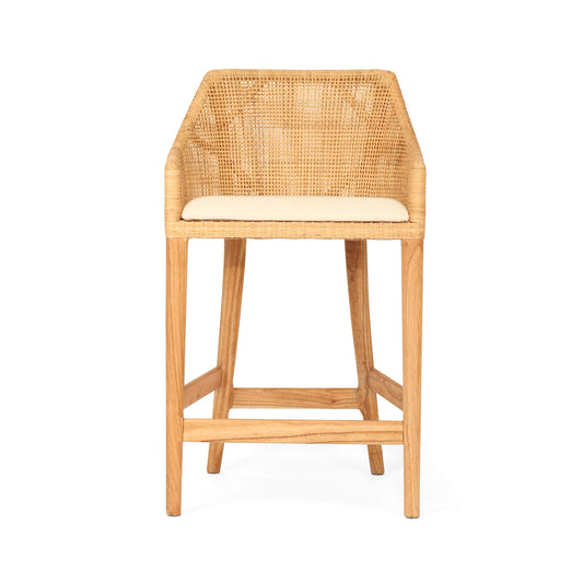 Eden | Natural Rattan Wooden 64cm Beige PU Leather Bar Stools | Set Of 2