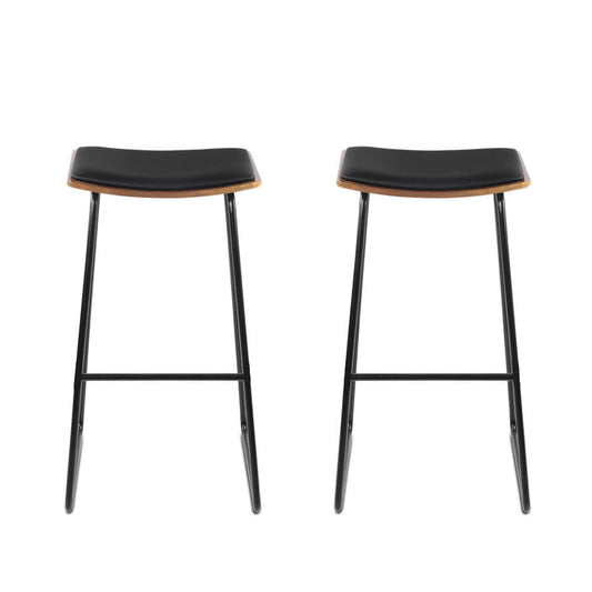 Monarto | Modern Black Metal PU Leather Bar Stools | Set of 2