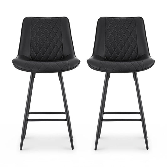 Bertrand | Modern Metal PU Leather Bar Stools | Set Of 2
