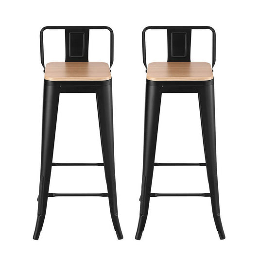 Derby | Industrial Stackable Wooden Metal Black 77cm Bar Stools | Set Of 2