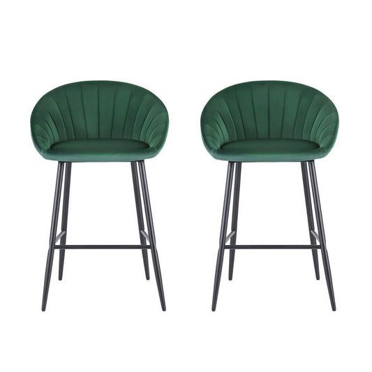 Bicheno | Modern Metal Green Velvet Bar Stools | Set Of 2