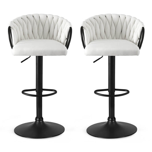 Merricks | Modern Swivel Black & White PU Leather Wooden Bar Stools | Set Of 2