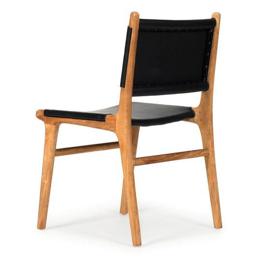 These chairs combine the warmth and durability of wood with the timeless appeal of black upholstery.