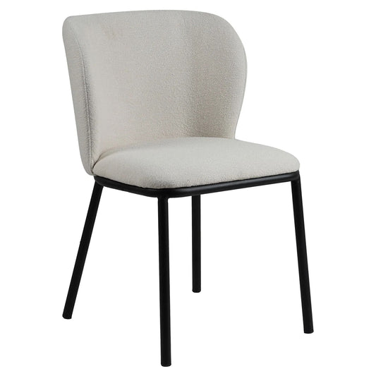 Greenmount | Modern Boucle Fabric Sand White Dining Chairs | Set Of 2