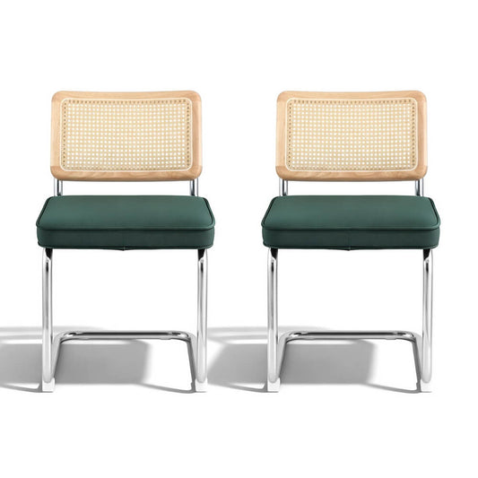 Greenacres | Modern Coastal Green Velvet Rattan Cantilever Dining Chairs | Set Of 2