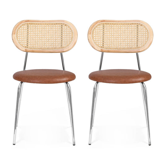 Stavanger | Modern Brown PU Leather Rattan Dining Chairs | Set Of 2