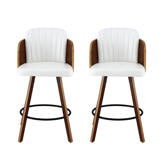 Alto | Modern Metal Swivel Counter Walnut Bentwood White PU Leather Bar Stools | Set Of 2
