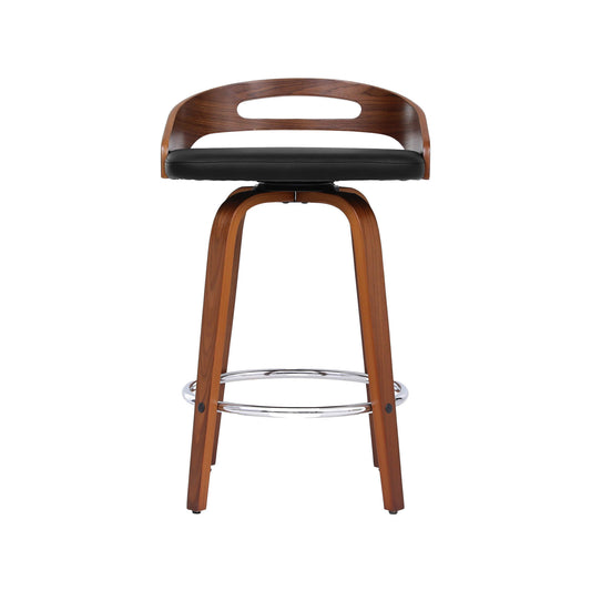 Epcon | Modern Swivel Walnut Wooden PU Leather Bar Stools | Set Of 2