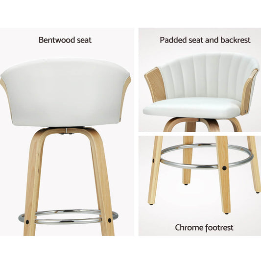 Astra | Contemporary Swivel Wooden White PU Leather Bar Stools