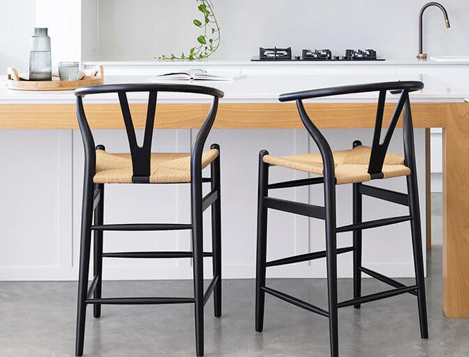 Our bar stools draw inspiration from the iconic design of the 1950s, influenced by portraits of Danish merchants seated in Chinese Ming Dynasty chairs.
